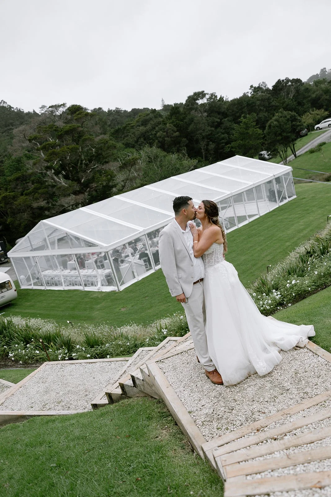 Private Garden Wedding Atmosphere – In a secluded valley setting, our boutique Auckland wedding venue in Matakana, 1 hour from the city, is surrounded by native trees and refined gardens, with complete privacy for your celebration.