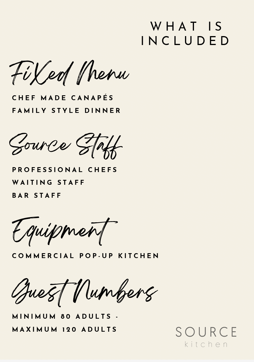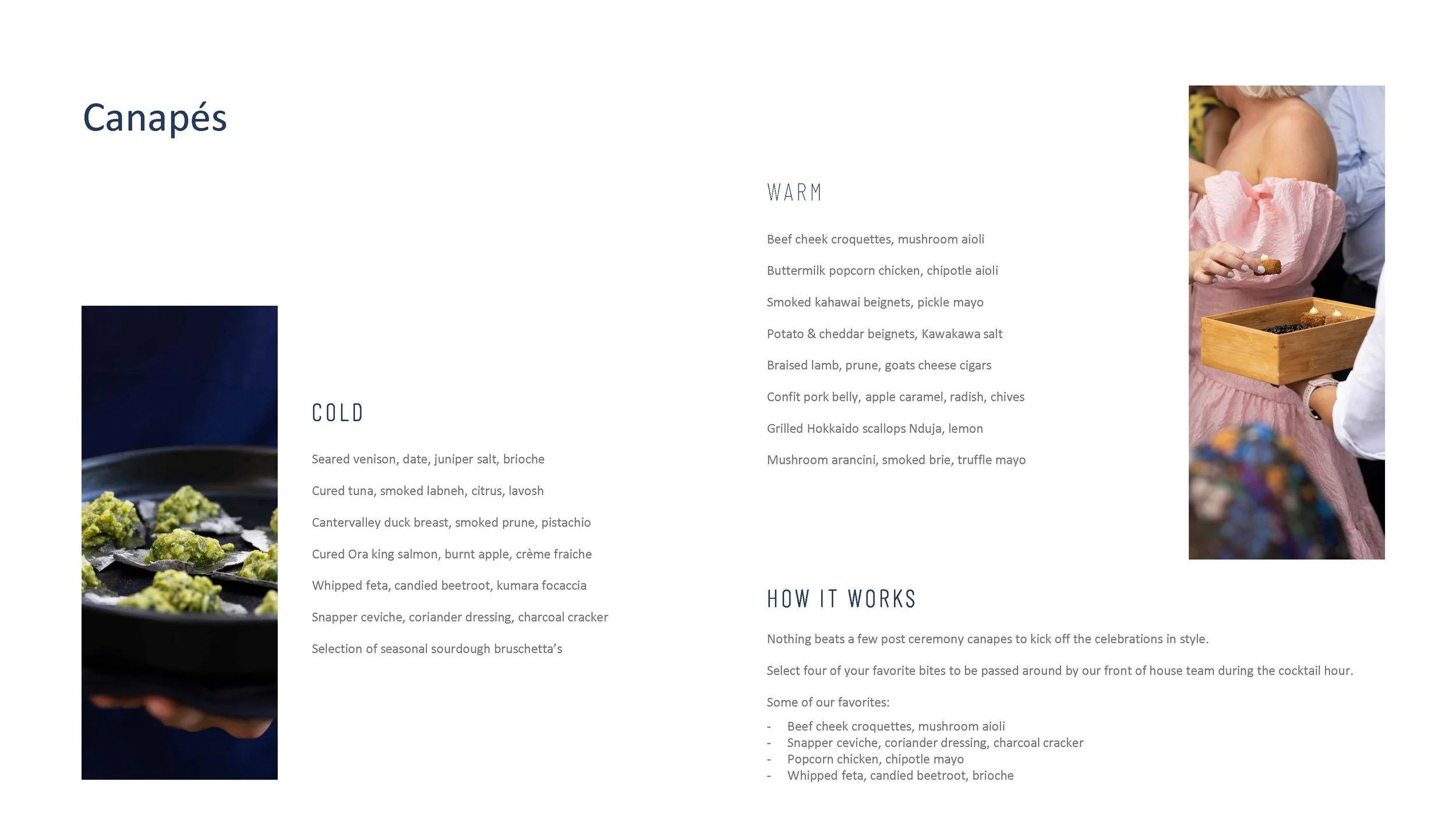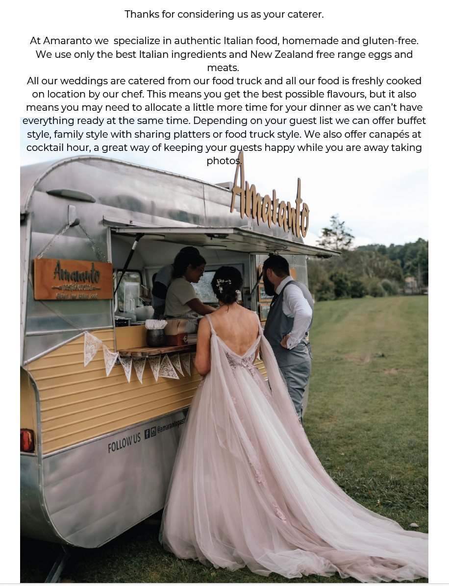 We have three recommended caterers who have supplied sample menus (open to adaption). These are below.