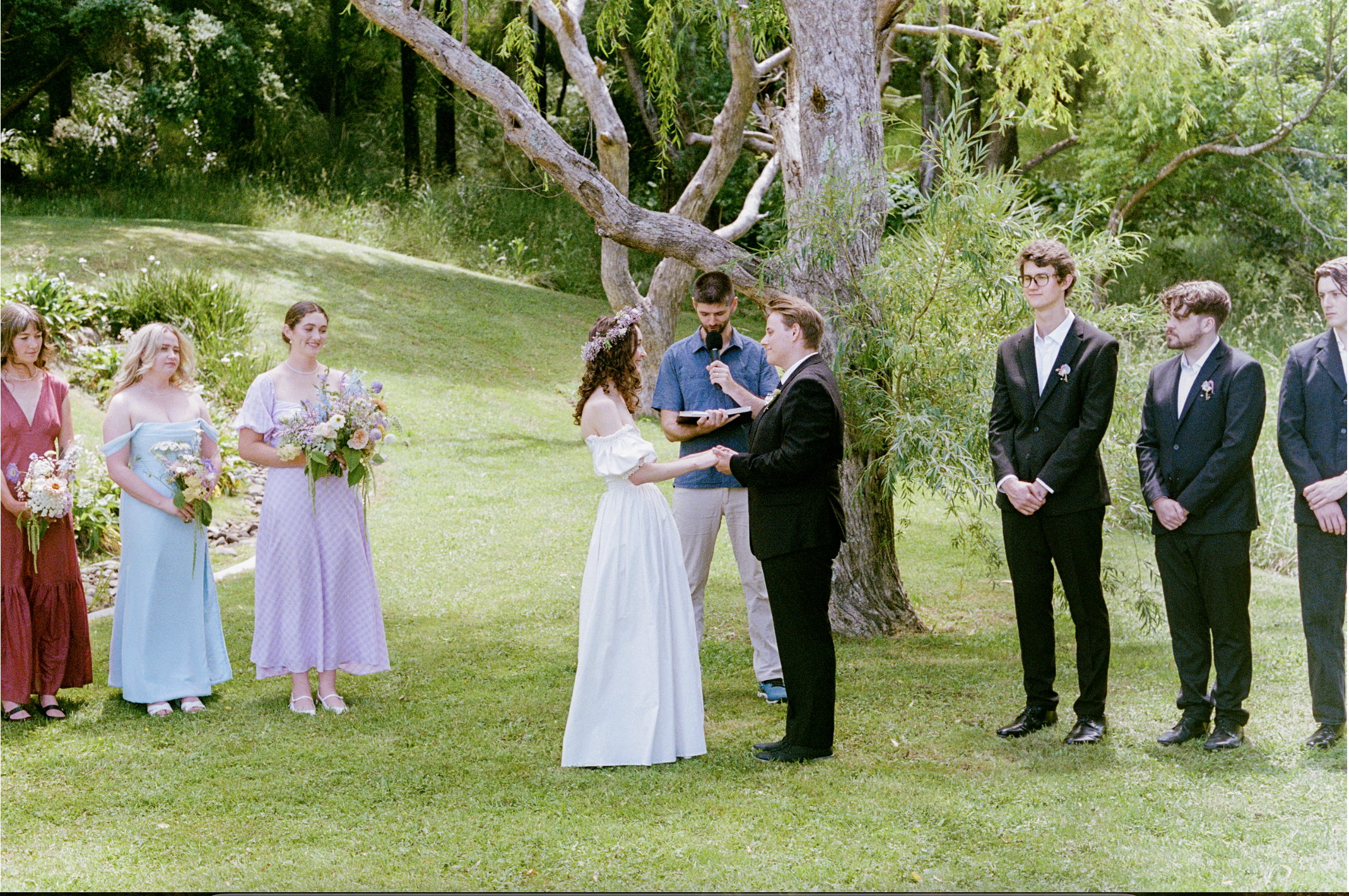 An intimate ceremony with family and two friends, lots of flowers and lots of laughter and joy.