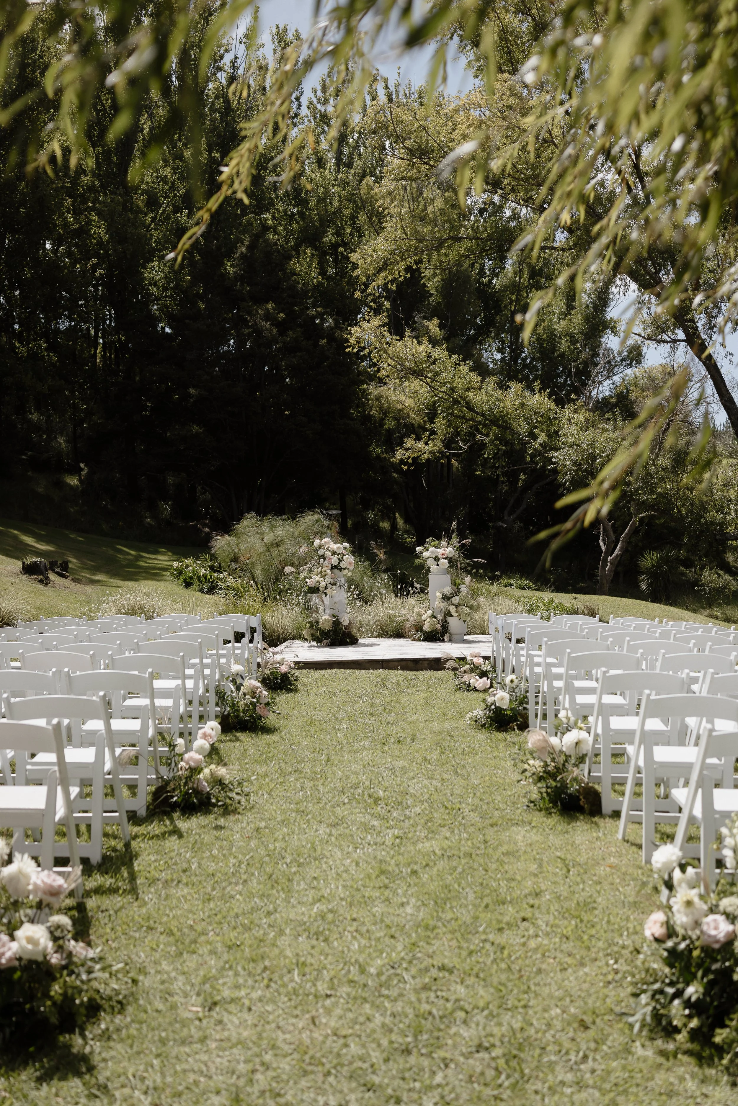 Frame your wedding ceremony with beautiful floral arrangements at Songbird Retreat, enhancing the peaceful, private, and unhurried atmosphere of our gardens. Our recommended Auckland wedding florists can design bespoke arrangements to suit your style and ceremony vision.