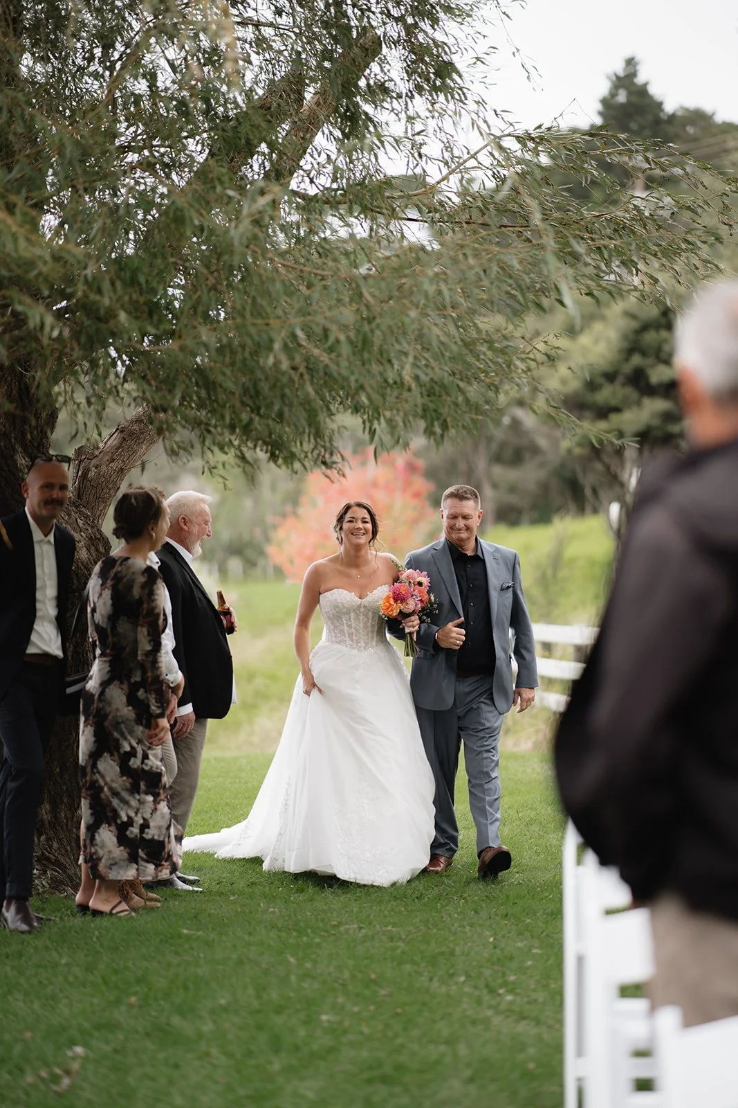 Autummn leaves frame Jade’s entrance to her ceremony.