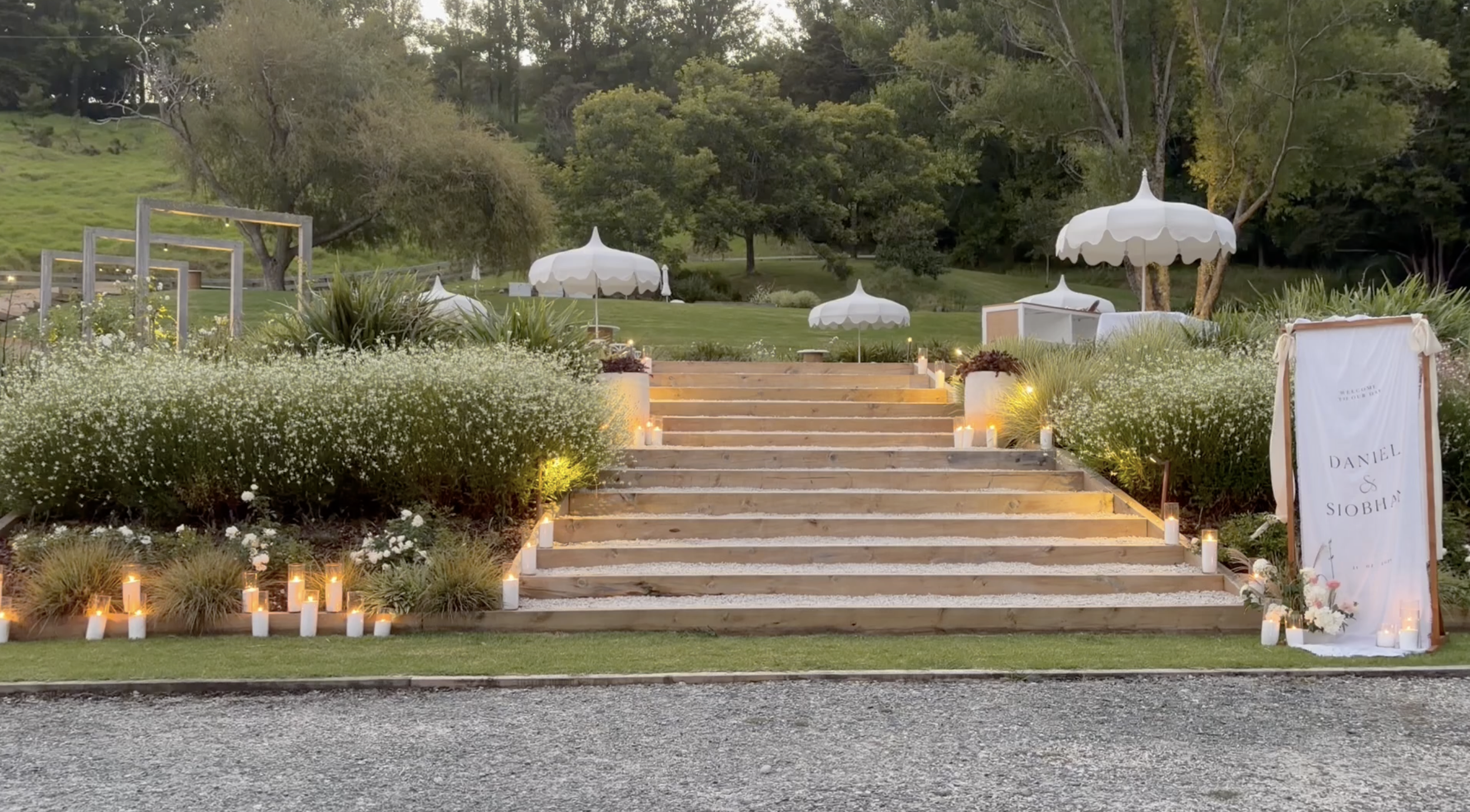 Design your aisle and ceremony platform. Siobhan chose Wildly, Madly, Deeply to create this stunning entrance to her cewremony.